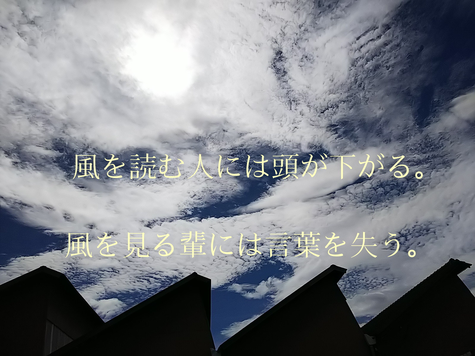 | [704] 風を読む人には頭が下がる。 風を見る輩には言葉を失う。 aoki@dwks 2020/07/08(水) 22:43:09 |