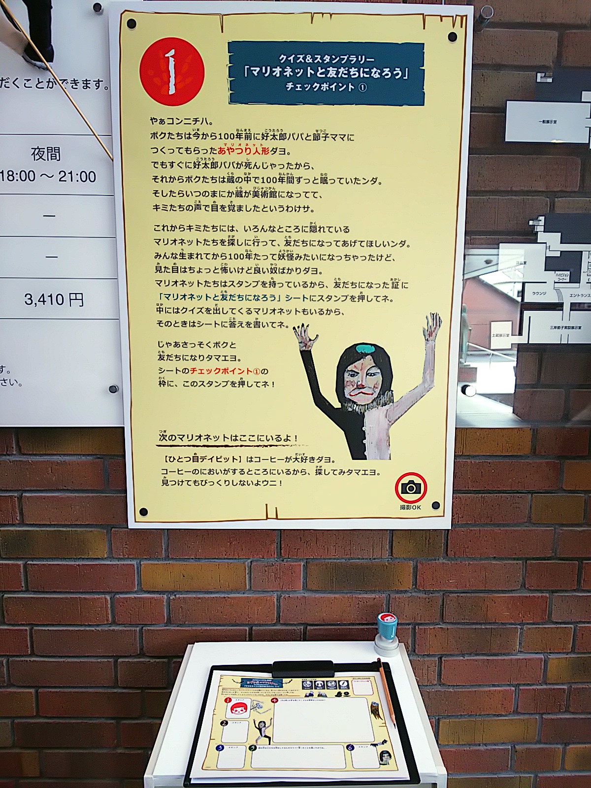 館内クイズ&スタンプラリー 一宮市三岸節子記念美術館:こどもミュージアム2020 「ミギシ家のマリオネット〜ジャイアントステップスの夏まつり〜」 7月18日(土)〜8月30日(日) http://s-migishi.com/program.html https://note.com/nitsubonome/n/n53fc82bea3e7 https://note.com/nitsubonome/m/mb994c78134a6 -- 添付画像【740_20200718-1.jpg : 0.6MB】添付画像【740_DSC_0199.JPG : 0.6MB】添付画像【740_DSC_0201.JPG : 0.7MB】