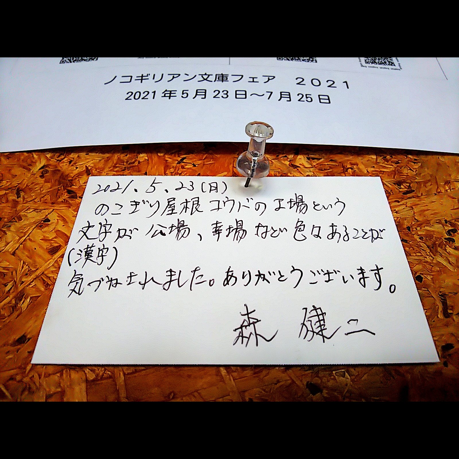 20210529:本日のメッセージカード お便り、ありがとうございます。 ---- 「ノコギリアン文庫フェア2021」開催中! https://div.36way.net/ad138/nitsubonome/nokogirian/_ex/Fair2021/ 2021.5.23-7.25 添付画像【1138_DSC_3536.JPG : 504.7KB】添付画像【1138_DSC_3545.JPG : 0.5MB】
