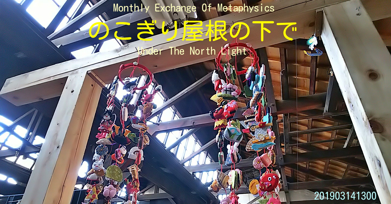 ■のこぎり屋根の下で Vol.18 次回開催日:2019年3月14日13時-17時 Monthly Exchange Of Metaphysics のこぎり屋根の下で Under The North Light ※持ち寄りテーマ歓迎 参加をご希望される方は、任意に題目としたい具体的な話題をご提示ください。 当日、その場で決めます。 特にテーマの提示が無い場合は、以下の定番メニューのいずれかを起点に意見交換を展開します。 ▼テーマ定番メニュー ・オープンソースを考える(Linux入門) ・プログラミングを考える(Scratch入門) ・矛盾を考える(磁石の特性にみる成り立ち) ・常識と非常識(日常と非日常) ・存在とは何か(在るから見えるのか、見えるから在るのか) ▼二坪の眼・エッセイ短編4部作 http://36way.net/nitsubonome.pdf 主宰:二坪の眼 問合:http://36way.net/fmail/36mail.htm 開催:毎月第二木曜日 13時-17時 参加:途中参加・途中退席可。飲み物・お茶菓子持参。参加費無料(寄付歓迎)。 会場地図:二坪の眼 https://www.facebook.com/nitsubonome/menu/ http://div.36way.net/ad138/nitsubonome/lib/20190314.pdf ----- ▼開催履歴 https://bit.ly/2Hluagb 添付画像【487_201903141300.jpg : 140.7KB】添付画像【487_20190314.JPG : 503.3KB】