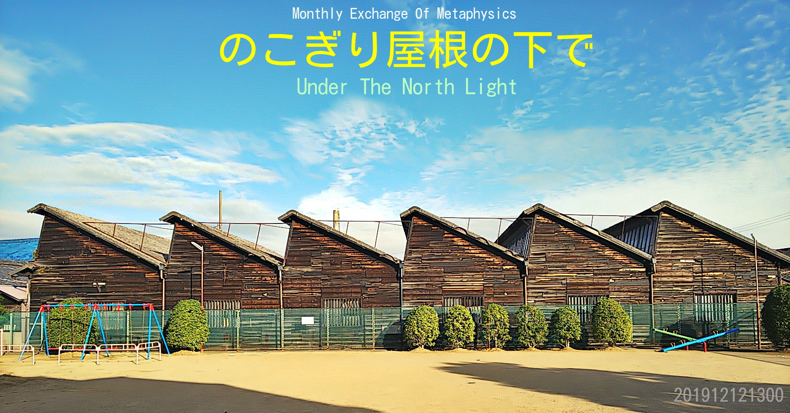 ■のこぎり屋根の下で Vol.27 次回開催日:2019年12月12日13時-17時 Monthly Exchange Of Metaphysics のこぎり屋根の下で Under The North Light ※持ち寄りテーマ歓迎 参加をご希望される方は、任意に題目としたい具体的な話題をご提示ください。 当日、その場で決めます。 特にテーマの提示が無い場合は、以下の定番メニューのいずれかを起点に意見交換を展開します。 ▼テーマ定番メニュー ・オープンソースを考える(Linux入門) ・プログラミングを考える(Scratch入門) ・矛盾を考える(磁石の特性にみる成り立ち) ・常識と非常識(日常と非日常) ・存在とは何か(在るから見えるのか、見えるから在るのか) ▼二坪の眼・エッセイ短編4部作 https://36way.net/nitsubonome.pdf ▼公園のベンチ(連載中) https://note.mu/nitsubonome/m/m576af74fce22 主宰:二坪の眼 問合:https://36way.net/fmail/36mail.htm 開催:毎月第二木曜日 13時-17時 参加:途中参加・途中退席可。飲み物・お茶菓子持参。参加費無料(寄付歓迎)。 会場地図:二坪の眼 https://www.facebook.com/nitsubonome/menu/ https://div.36way.net/ad138/nitsubonome/lib/20191212.pdf ----- ▼開催履歴 https://bit.ly/2Hluagb 添付画像【542_201912121300.jpg : 145.5KB】添付画像【542_20191212.JPG : 501.7KB】