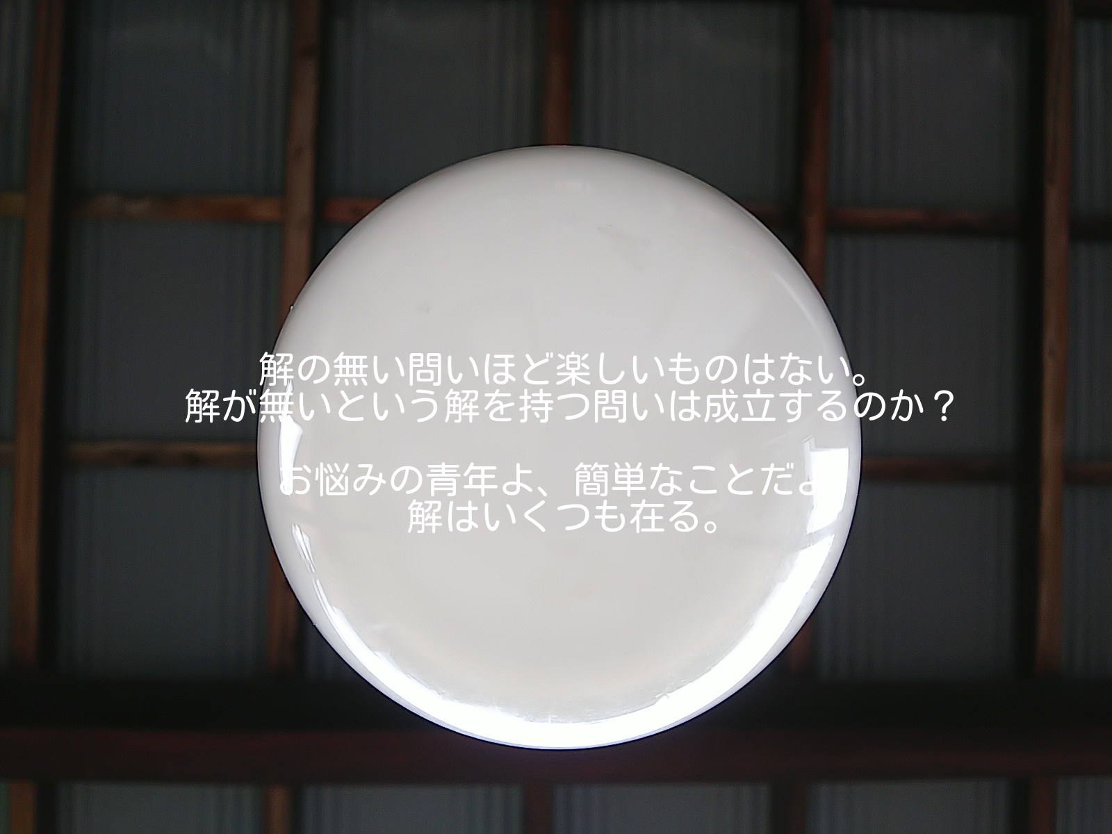 解の無い問いほど楽しいものはない。 解が無いという解を持つ問いは成立するのか? お悩みの青年よ、簡単なことだよ。 解はいくつも在る。 -- 添付画像【624_DSC_2031-1.JPG : 280.8KB】