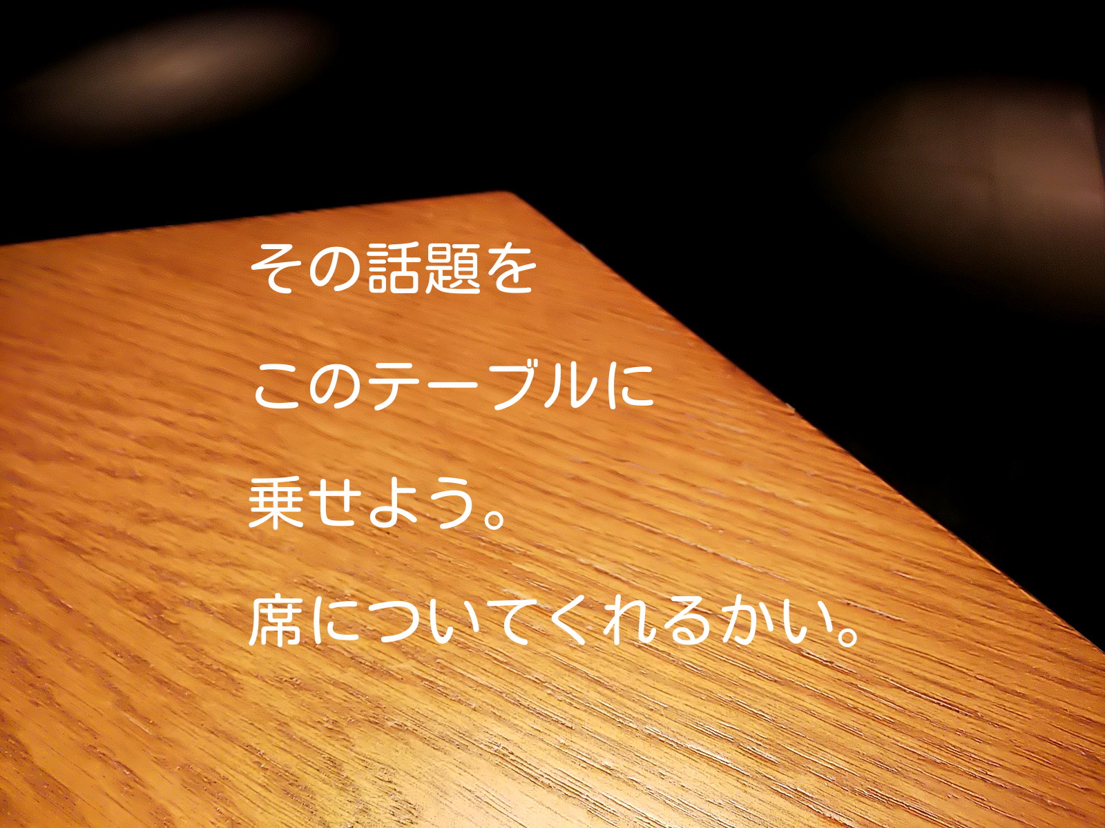 [922] その話題をこのテーブルに乗せよう。 席についてくれるかい。 aoki@dwks 2020/08/30(日) 22:30:06 [添付]